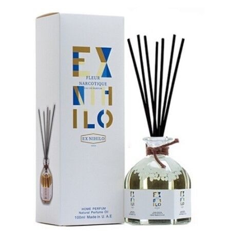 Диффузор Ex Nihilo «Fleur Narcotique» - это стеклянный флакон с ароматной жидкостью. В него помещаются несколько палочек, через которые жидкость, медленно испаряясь, ароматизирует помещение.