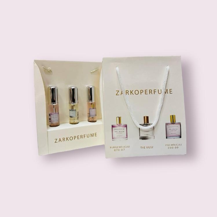 Каждый флакон парфюма выполнен с любовью и тщательно подобранной композицией нот, чтобы дарить удовольствие и умиротворение своему обладателю. Подарочный набор Zarkoperfume станет прекрасным дополнением к вашей коллекции ароматов или идеальным подарком для ценителей изысканных запахов. Позвольте себе окунуться в мир роскоши и утонченности с этим неповторимым набором ароматов от Zarkoperfume.